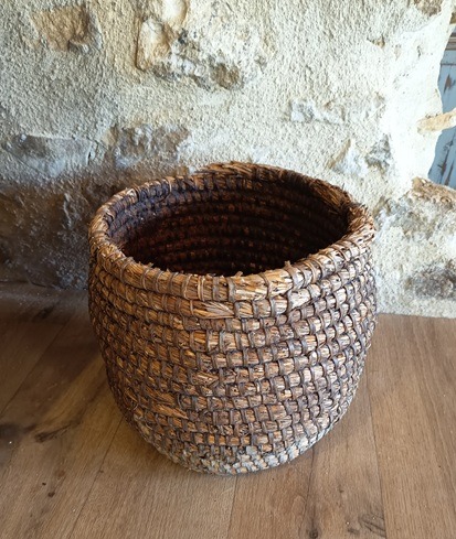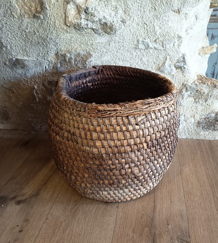 Panier rustique en fibres naturelles, autrefois utilisé pour le stockage des grains. Peut facilement se transformer en cache-pot ou support décoratif pour vos événements, apportant une touche authentique et naturelle à vos mises en scène.