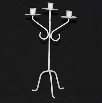 Chandelier simple à 3 branches, blanc, idéal pour apporter élégance et lumière sur table ou buffet. À associer avec bougeoirs, photophores ou chandeliers de tailles variées pour un ensemble harmonieux et raffiné.
