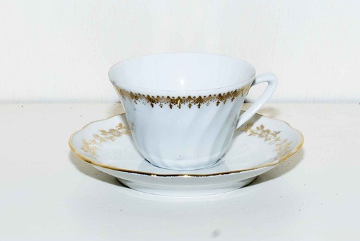 Ensemble décoratif tasse et soucoupe avec motifs floraux et liseré doré. Parfait pour une table romantique et délicate. À associer avec vaisselle ancienne, soliflores roses ou transparents, bougeoirs dorés, nappes en lin et compositions florales douces pour une ambiance élégante et intemporelle.