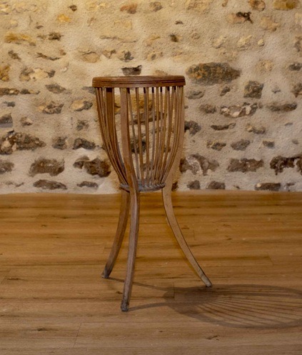 Ancienne travailleuse à pelotes détournée en porte-plante décoratif. Son piètement élancé et son charme vintage en font un support idéal pour accueillir une plante, une composition florale ou quelques feuillages. À utiliser seule ou en accumulation, elle se marie facilement avec des lanternes, des vases ou du mobilier en bois pour créer un décor chaleureux et naturel.