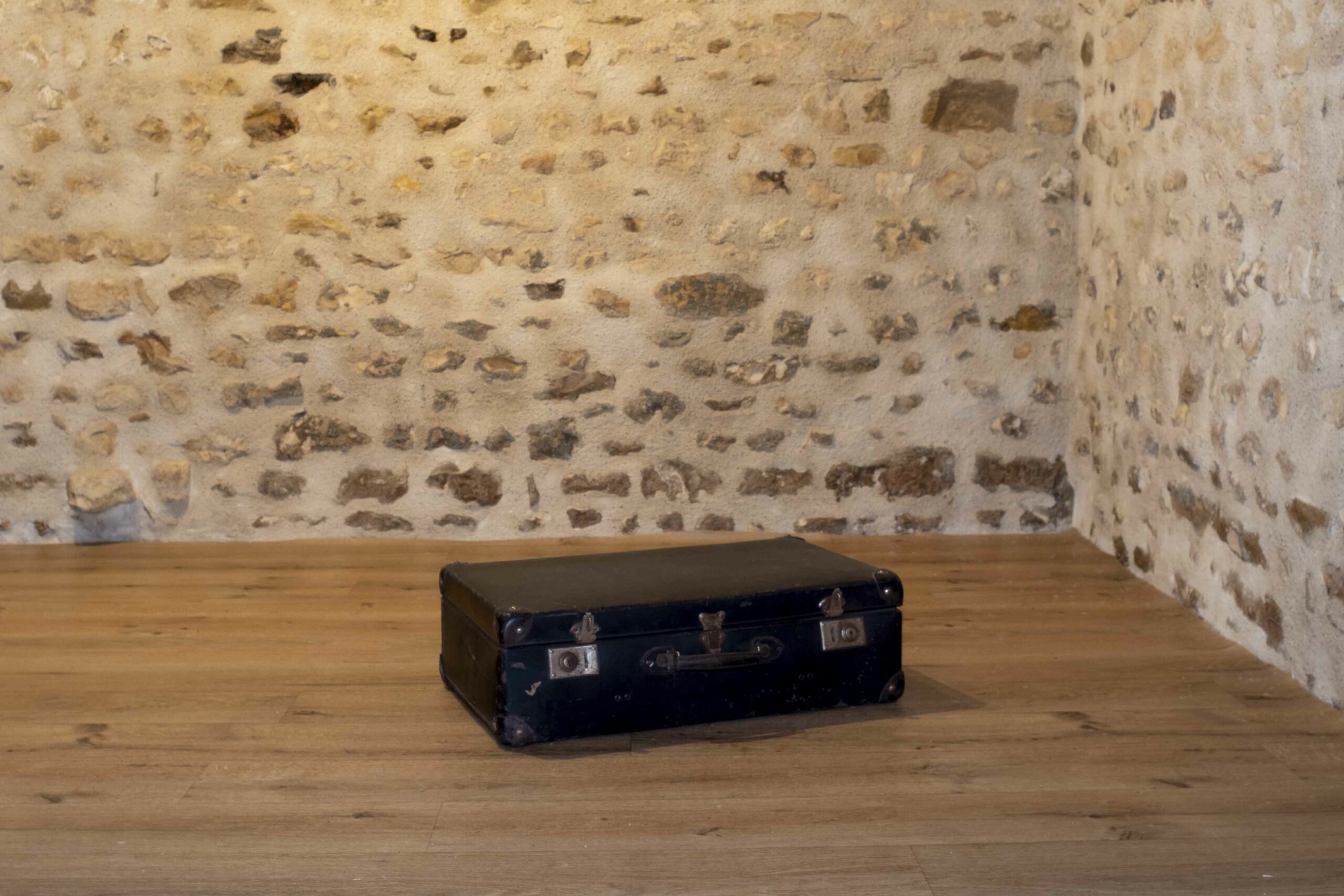 Valise vintage noire, usée mais charmante et pleine de caractère, parfaite pour ajouter une touche rétro et élégante à vos compositions décoratives ou coins photo. À associer avec d’autres valises ou accessoires vintage pour un rendu cohérent.